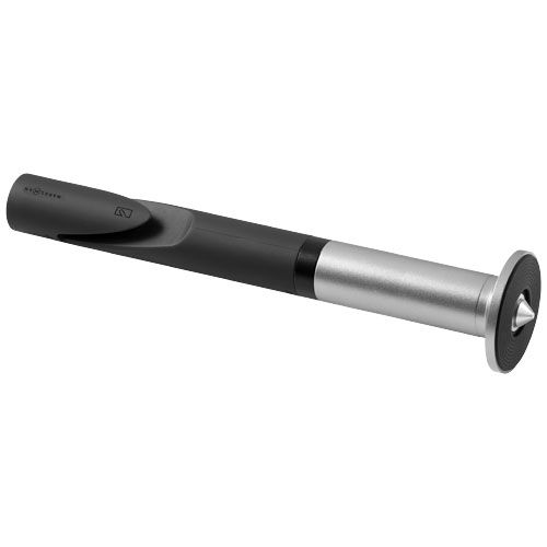 Exos car emergency tool. Compact 2-in-1 tool with a seatbelt cutter integrated in the soft touch handle and a window breaker which is spring loaded and can be activated by pushing the tool against the window. Packed in a Marksman gift box. Exclusive design. IF Award winner 2015. Aluminum and ABD with soft touch.